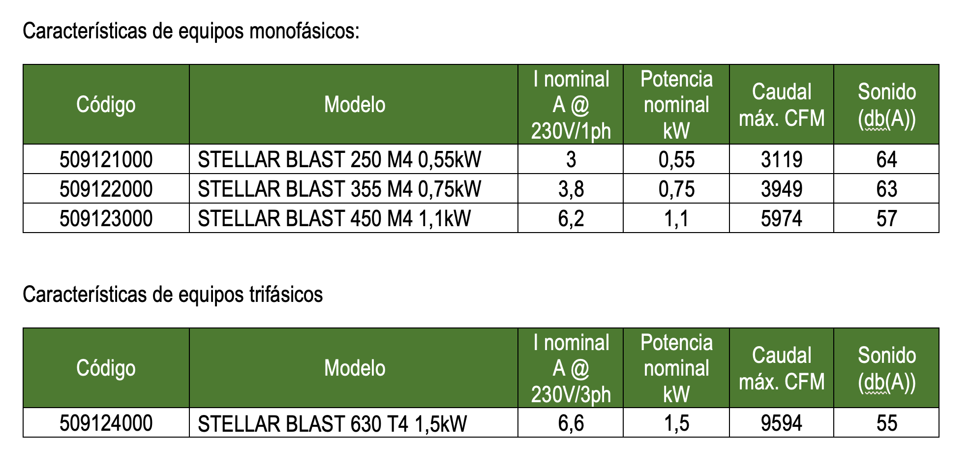 • Turbina de álabes curvados hacia atrás de alto rendimiento, con sistema auto limpiante, construidas en aluminio.